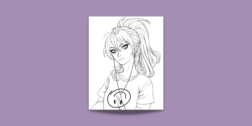 Time taken to draw these lines: 7 hrs, 49 min. Check out this linework from one of my original illustrations that you can download and color yourself! Please give credit if/when you use this page and post it publicly. Thank you!